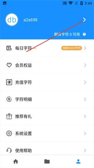 1、在个人中心界面,点击账号区域右侧的箭头按钮。
