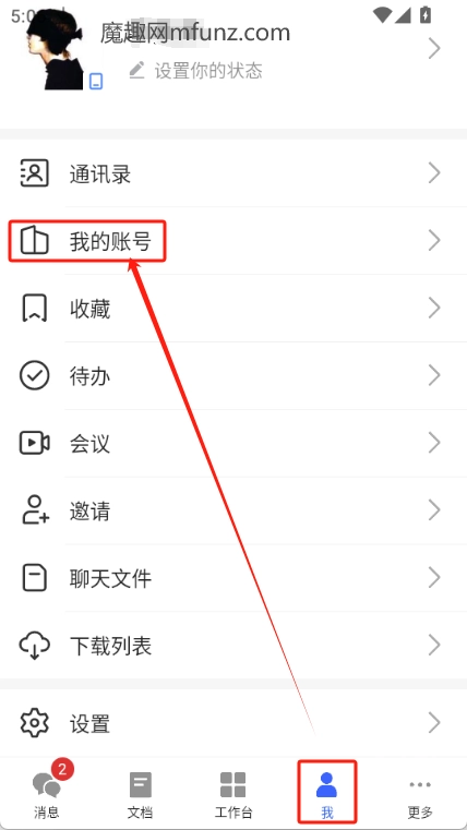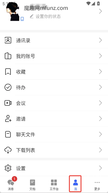 点击我可以进行相关设置、账号管理,还能邀请好友或发起会议等操作。
