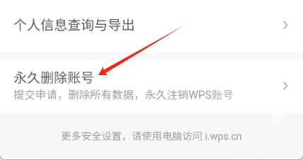 滑到页面底部,找到并点击“永久删除账号”选项,之后按照系统给出的提示完成后续操作就可以了。