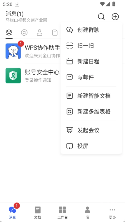 消息栏目能够接收来自WPS或协作同事的消息,其中也包含账号操作通知之类的内容。