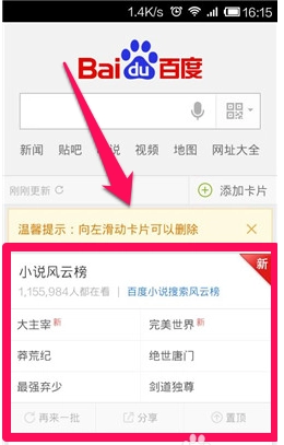 4.进入到添加卡片这里,选择自己需要添加的,小编选择添加“小说风云榜”。