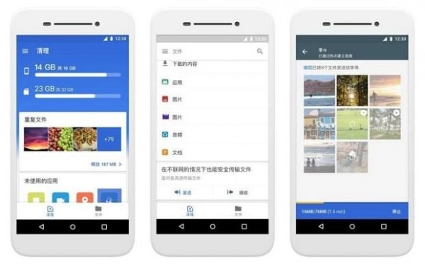 虽然智能手机的存储空间一直都在增加,但似乎你永远感觉空间不够!手机里有太多的应用,图片,以及越来越多的视频。随着这些文件不断累积,情况变得一团糟。你很难及时找到需要的文件,而且手机运行速度变得越来越慢,乃至“龟速爬行”。人们需要有一种更好的方式,来管理手机里的各种文件,因此,我们在去年12月发布了FilesGo这款应用。今天,我们很高兴的发布了这款应用针对中国的全新定制版本——Google文件极客。Google文件极客将帮你清理空间,更快地找到文件,并更方便的与他人分享文件,应用安装包大小仅为8.4MB。