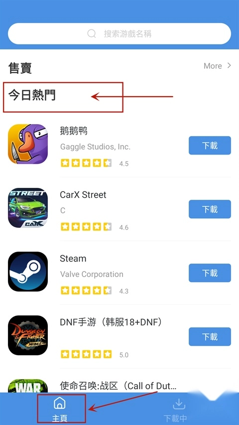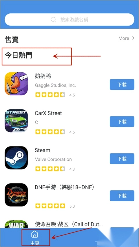 安装GameToday并运行软件后,就能看到平台推荐的大量最新热门游戏,像《鹅鸭杀》《CarX Street》等都在其中,用户可以直接选择这些游戏畅快游玩。