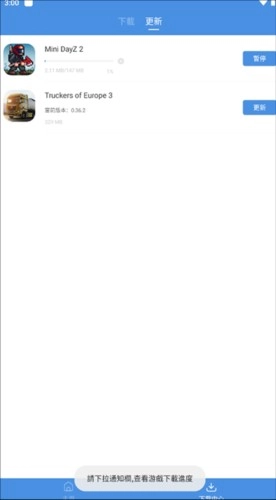 管理功能:从名称就能明白,你可以对游戏APK文件进行管理操作,在这里能够完成删除和更新的任务。
