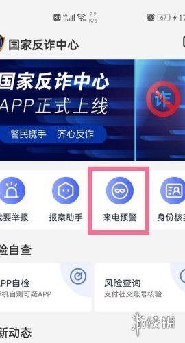 1. 开启国家反诈中心应用,接着在首页位置点击【来电预警】这一功能。