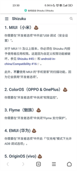 安卓11及其以上系统只需根据步骤指南通过无线调试启动Shizuku,步骤指南中有针对常用厂商机型的可能遇到的问题的解决方案