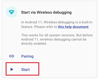 通过无线调试启动适用于Android11或以上版本。这种启动方式无需连接电脑。由于系统限制,每次重新启动后都需要再次进行启动步骤。