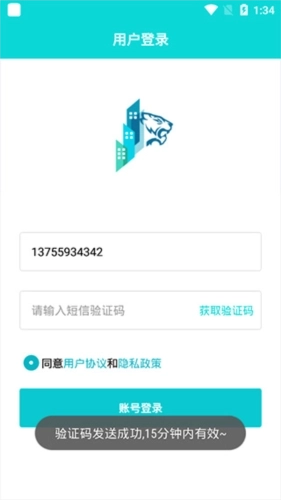 2、请先同意软件的使用协议,接着依次输入您的号码和获取到的验证码。