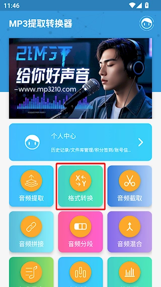 1、打开MP3提取转换器,点击【格式转换】;