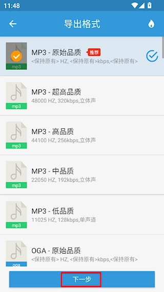 3、挑选导出格式,点击【下一步】,依照后续提示就能简单完成转换。
