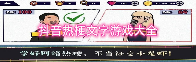 抖音热梗文字游戏大全分享给大伙儿,这些游戏都是基于抖音热门梗的文字游戏,玩家需要根据提示猜出对应的梗,并在规定时间内完成游戏。了解热梗可以增加玩家的趣味性和挑战性,游戏玩家们在游戏中可以根据文字提示来完成各种挑战的哦,感兴趣的小伙伴们快来下载抖音热梗文字游戏玩玩吧~