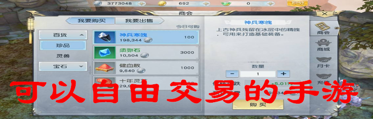 在手游里面有时候会有一些装备不喜欢用但是放在仓库里面又太可惜了怎么办呢?这里为大家推荐一些可以和玩家们一起进行自由交易的手机游戏,再也不会忧心装备空置了的烦恼,你可以在这里自由的进行交易没有任何限制价格由你定哦,感兴趣的伙伴们下载可以自由交易的手游来试试吧!